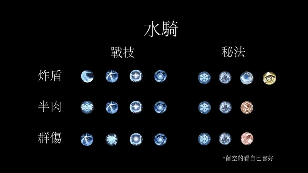 先从二转和三转开始说好了。骑士三转只有碎星斩一个战技是有用的,剩下全是**,所以玩家在进入泽之国9之前建议把所有常规池子都抽完,剩下的高级技能抽和自选留着抽三转的碎星斩。泽国骑士主要是两个流派(虽然我写了三个)。