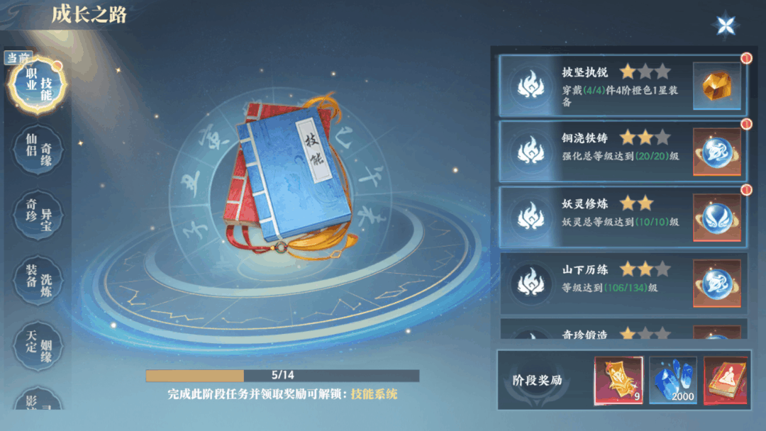 【功能太多,教你轻松分辨】这些功能开了就用!1.坐骑/翅膀:主线送的,去“进阶”那里一键升级2.每日福利:等级奖励、登录送礼、游历经验,每天记得领3.成长之路:在界面右上角,还能提醒你查漏补缺4.奇缘玩法:免费抽取记得用,能获得更多妖灵和碎片