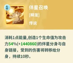 伴星plus的天象技能,放在伴星后面能直接2连分身。配合一定闪避率,可实现长时间不掉血效果,让骑士在BOSS攻击下坚持更久。