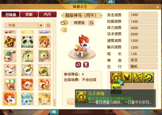 二、生肖神兽超级神马技能解析
