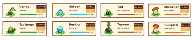 为辅助农耕,游戏引入了四种功能各异的花园精灵。叶精灵协助播种,水精灵负责浇水,土精灵能提升施肥效率,蘑菇精灵则帮助采摘。这些迷你助手能有效加快耕作流程,使农场管理更加轻松高效。