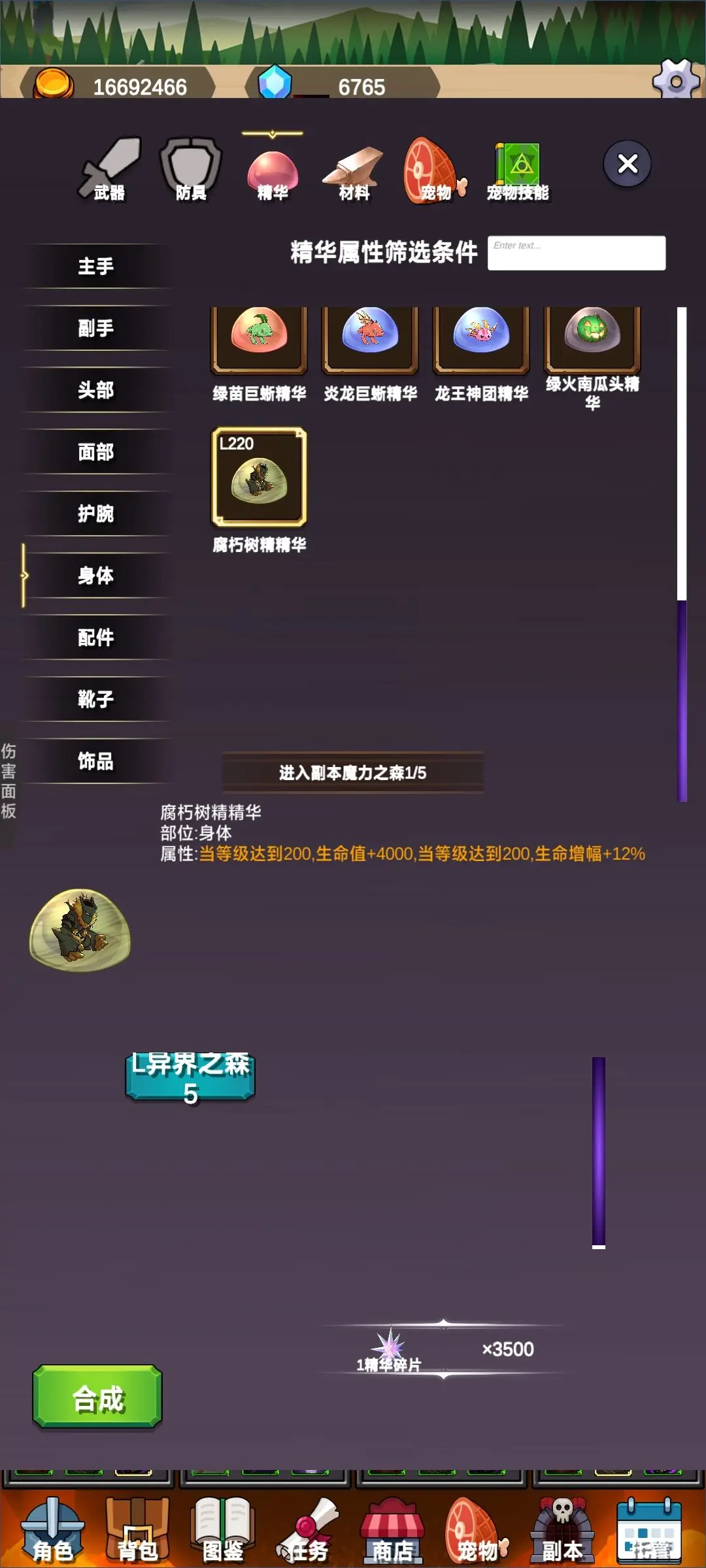 异界5腐朽树精生命加成4组16个前排通用生存精华