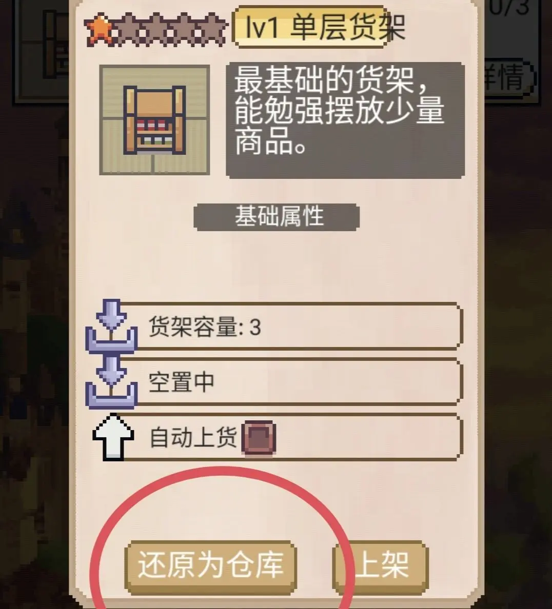 开局不小心把货架还原成仓库,不用重开看教程。正确做法是前往风车村重新制作新货架,推荐选择多层货架,容量更大。学习技能→通用→严丝合缝后,还能提高33%容量。
