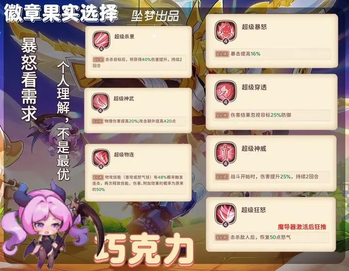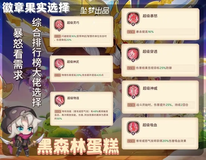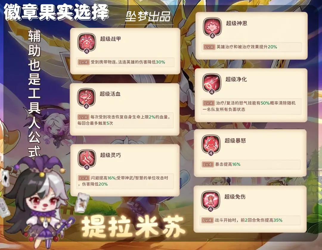 最新热补提到提拉米苏要用暴怒徽章,能带来16%的暴击率加成,对于提拉米苏这类角色而言,暴击率提升能显著增强其输出能力。