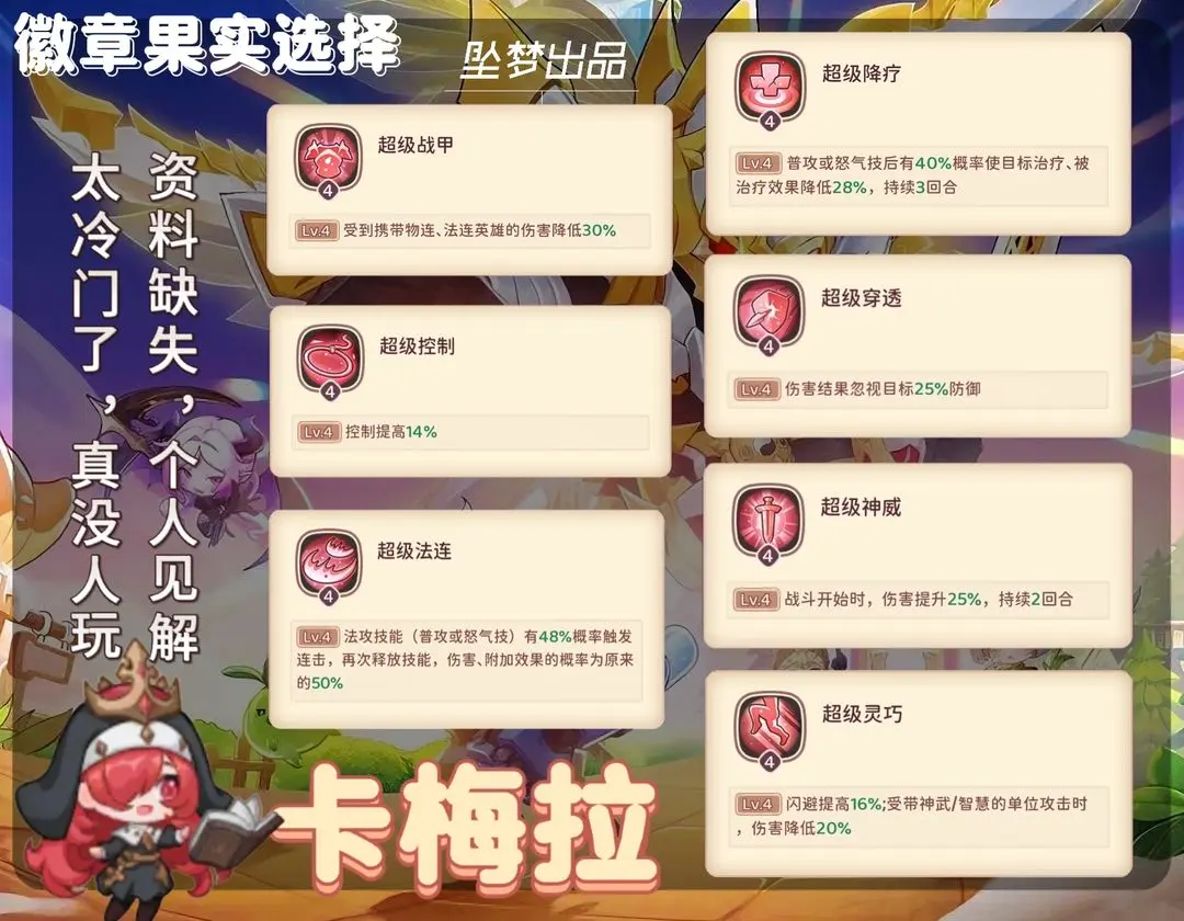 辅助角色对物连和法连徽章均无效,所以在选择徽章时,要根据辅助角色的具体技能和定位来挑选。比如一些能提升团队防御、治疗能力的徽章,或者增加辅助角色自身生存能力的徽章,都是不错的选择。