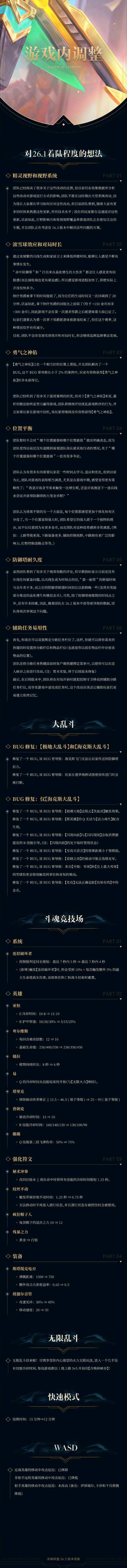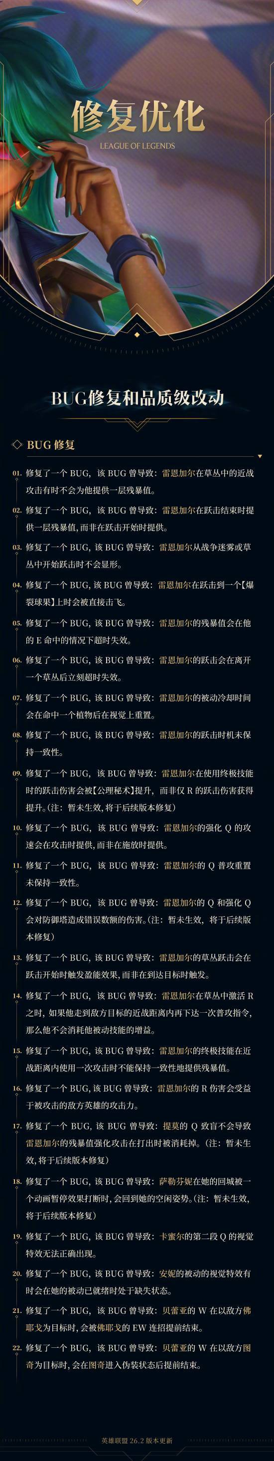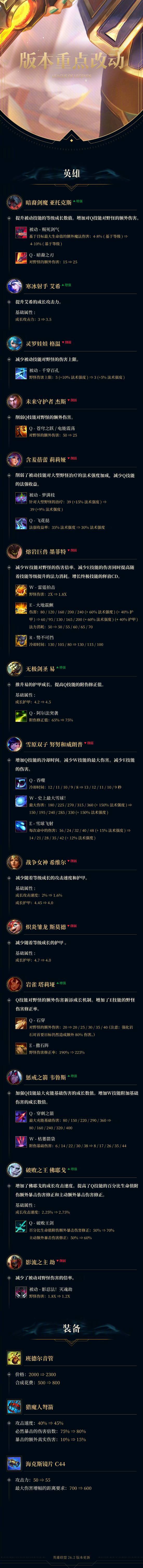 对英雄、装备、符文、海克斯大乱斗及斗魂竞技场进行了平衡性调整,还修复了BUG并进行了品质级改动,让游戏更加公平稳定。本次更新详情可点击下方长图查看。