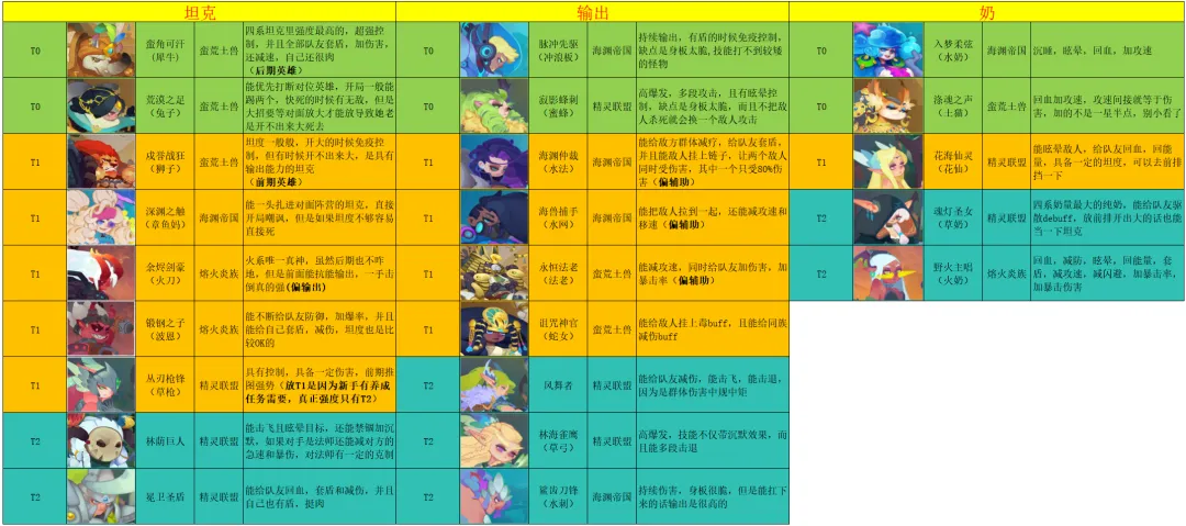 前排推荐犀牛和兔子,辅助可选土猫、花仙和草奶,输出方面水法是不错的选择,其他英雄可根据队伍阵容搭配来决定是否培养。