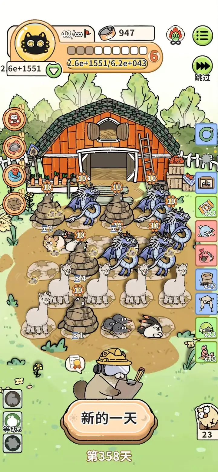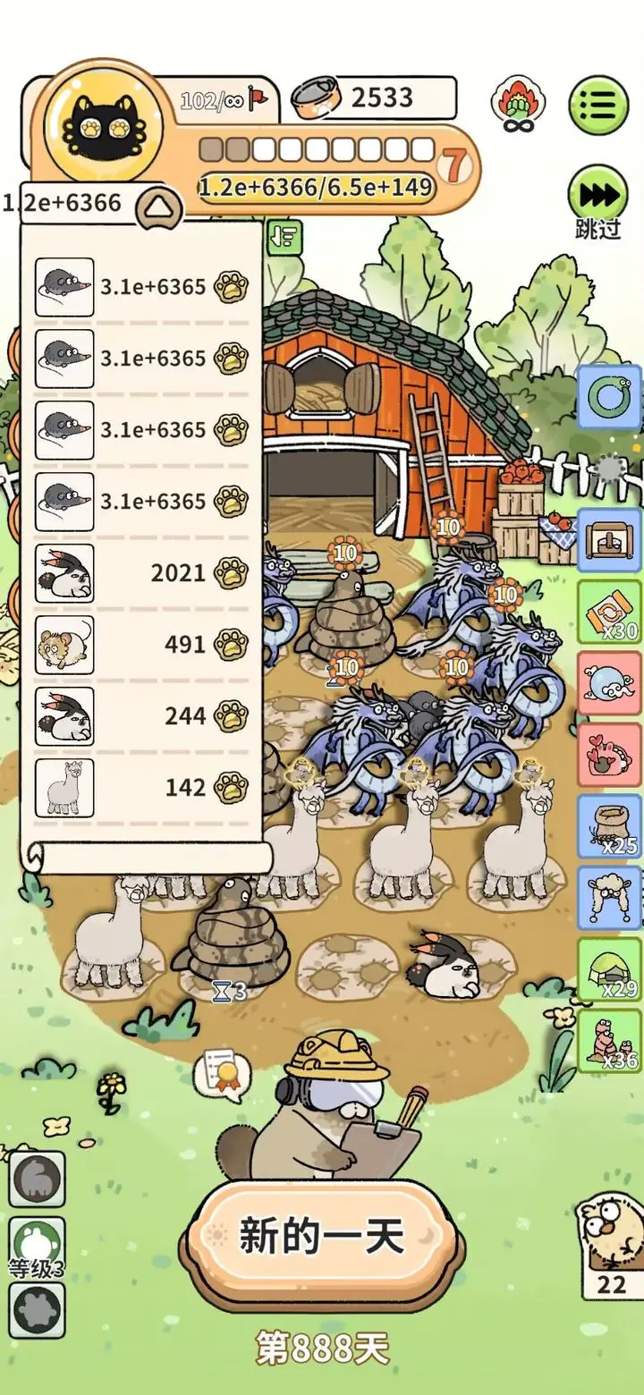 道具买齐后可通过布阵让每日金额指数级增长,300天达10的1000次方。布阵前提是大于17个帐篷加一个进化之环,帐篷可固定动物,被固定且不相邻的动物即使有杰瑞也不繁衍,可借此固定淘气兔。