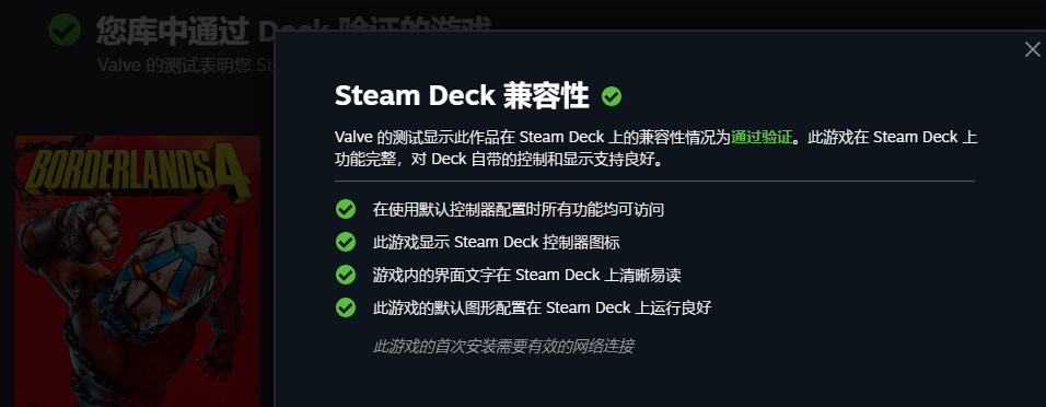 官方引用Steam Deck公告称,无主之地4在Steam Deck上兼容性通过验证。该游戏在Steam Deck上功能完整,对Deck自带的控制和显示支持良好,玩家能在掌机上获得不错的游戏体验。