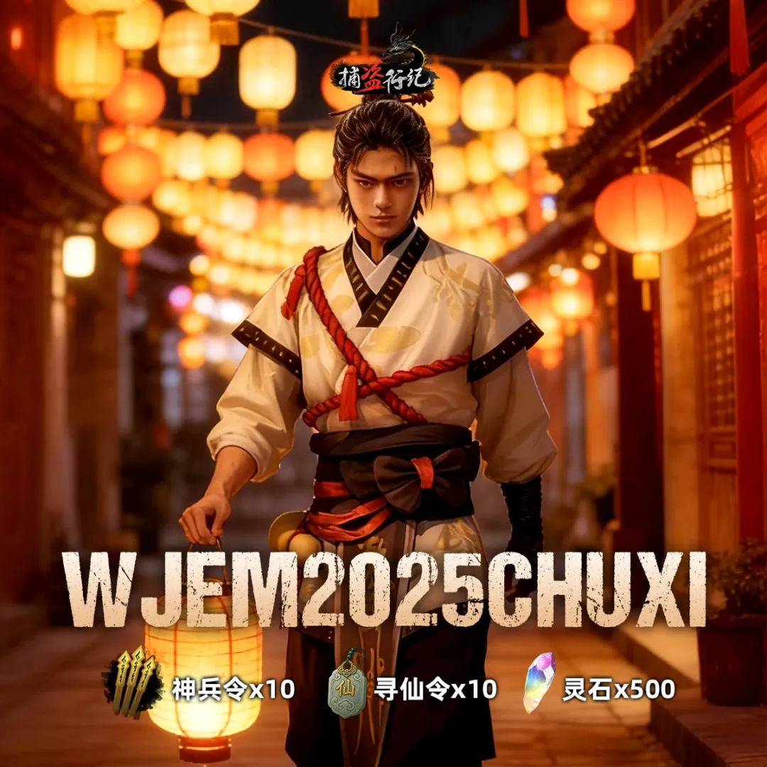 2.福利码WJEM2025CHUXI,福利内容神兵令*10+寻仙令*10+500灵石