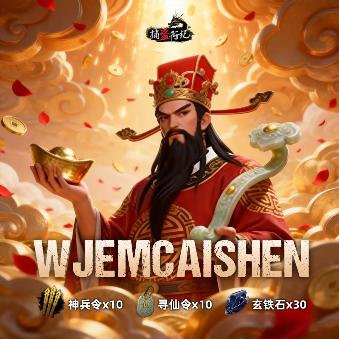 4.福利码WJEMCAISHEN,福利内容神兵令*10+寻仙令*10+玄铁石*30;
