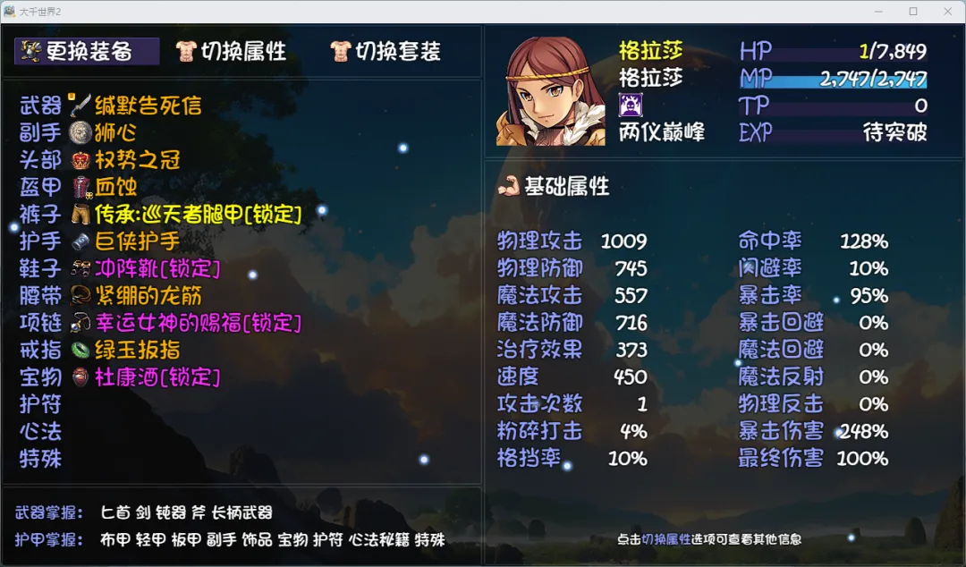 下面附上我个人的装备和心法配置,仅供大家参考。合适的装备与心法搭配能发挥出更大战斗力。
