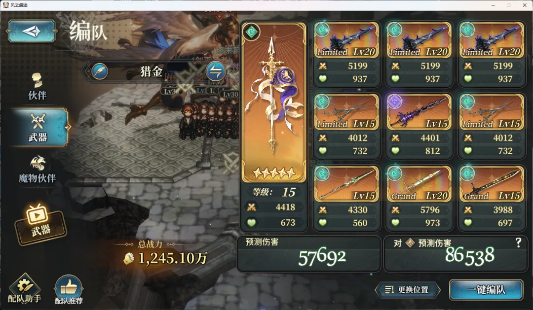 是一样的(如图四),至于你要问不要石油武器可以吗,那肯定是不可以的,少一把都会丢很多伤害,至于机神附魔的材料有限,我们就不浪费了,依旧使用伤害附魔的风机神枪(如图五),幻影附魔的话不用特意去附,轴都是能和岛主的幻影对上的,然后神武附魔的话依旧使用技伤和全力(如图六,图七),我们有满破泉的情况下可以保证前几t能吃满全力的加成,这也就是为什么我说满破泉是刚需。