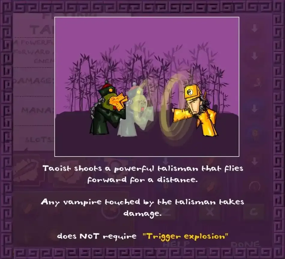 演示炸符第二关依旧平平无奇,只是多了一个血量厚一点的精英僵尸而已,但是已经解锁了一件道长标配道具,定尸符和符爆,可以用来牵制进攻的僵尸,伤害也很乐观。