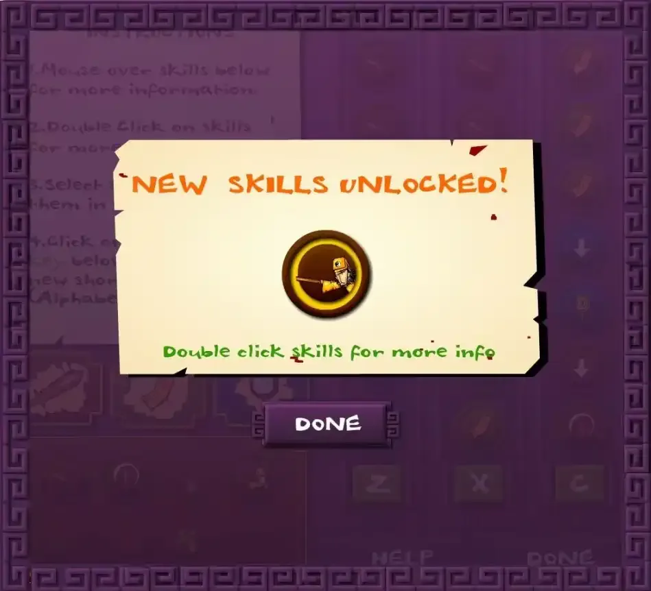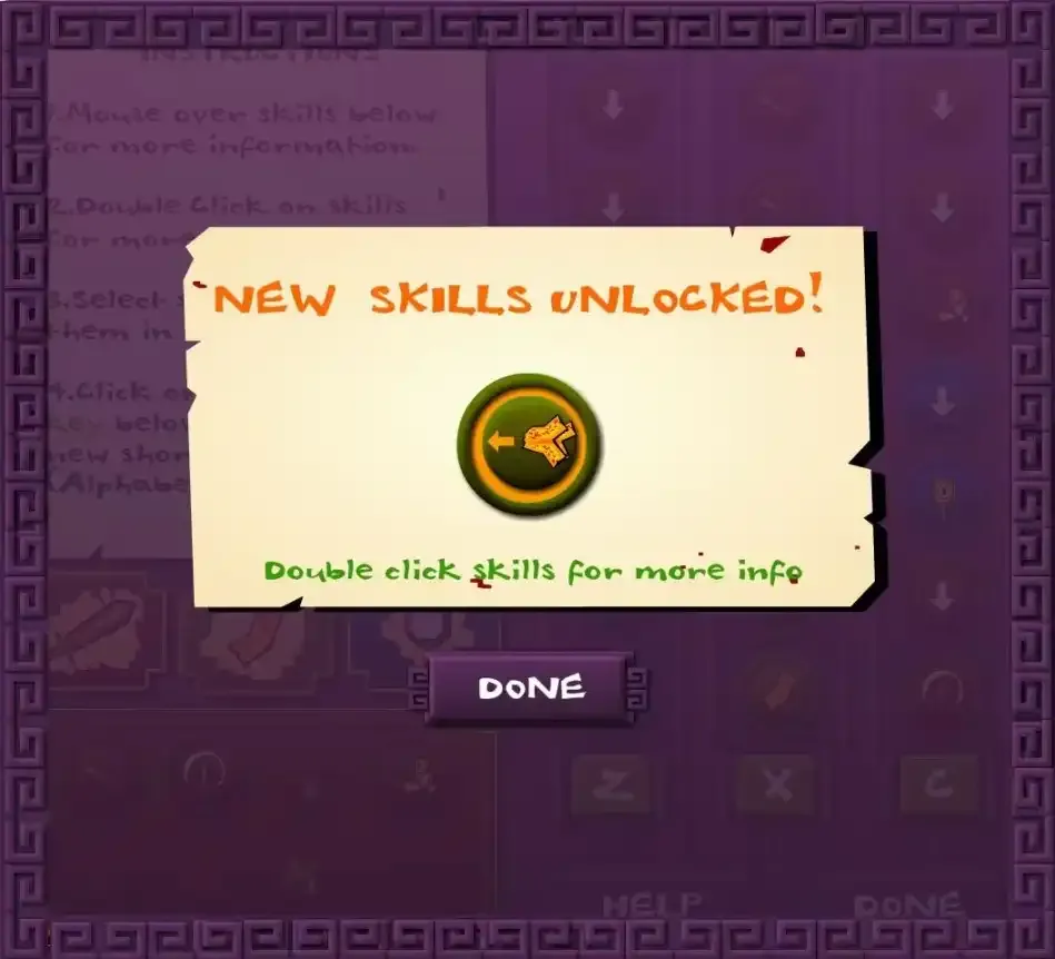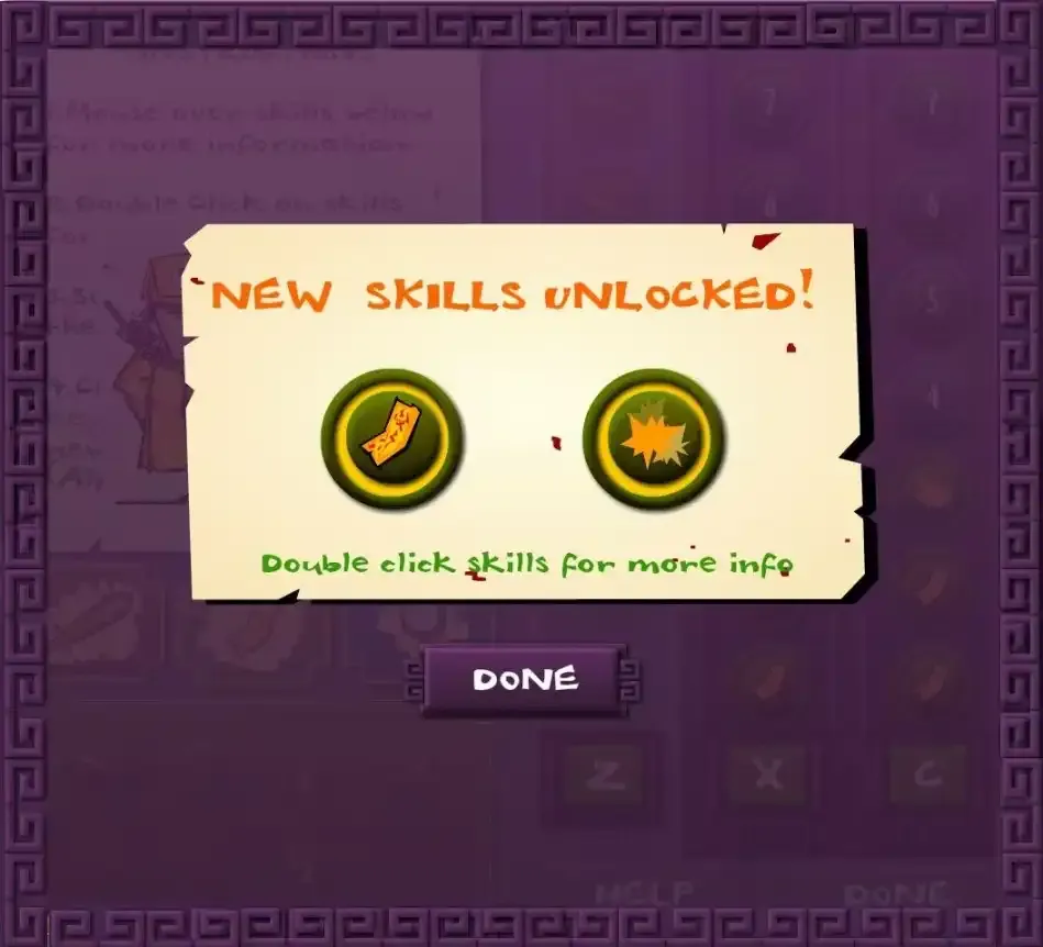 照妖镜演示第一关就是绿色僵尸家族,用来练练手的一关,毫无难度,除了普通攻击之外还会解锁一个照妖镜和半月斩,都是可以用来击退僵尸,为自己脱身的好技能。