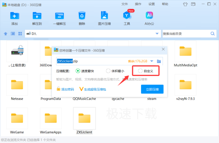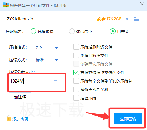 5.设置完成后点击【立即压缩】,等待压缩完成即可看到每个分卷1024M的压缩包组。