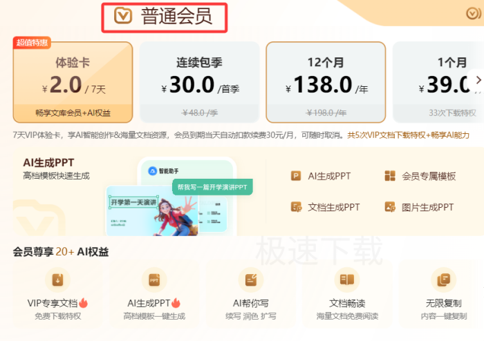 经过极速下载软件通实测,百度文库的智能PPT功能需要用户付费使用,如果用户需要使用这项功能,需要提前开通相应会员,否则只能生成内容而无法下载内容。