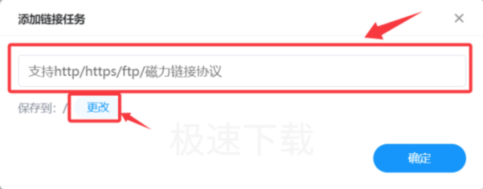 2.在弹出的新界面中填入文件的【下载链接】,并点击下方的【更改】;