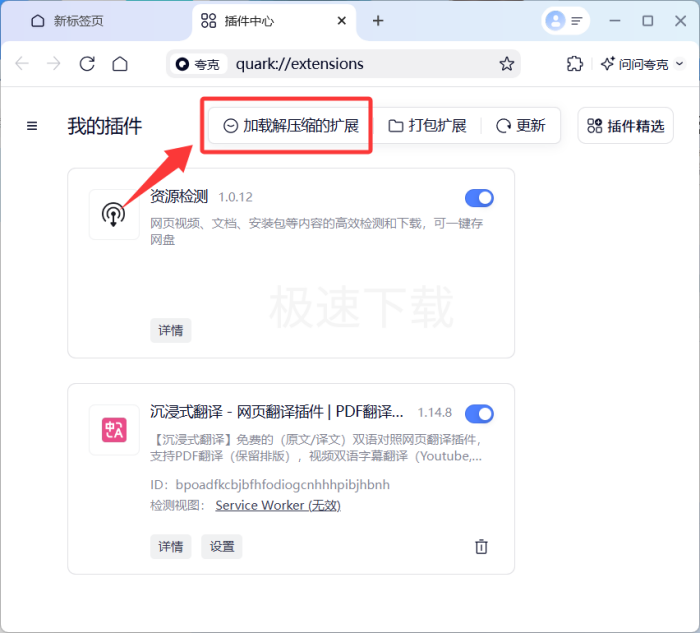 夸克浏览器加载本地插件教程