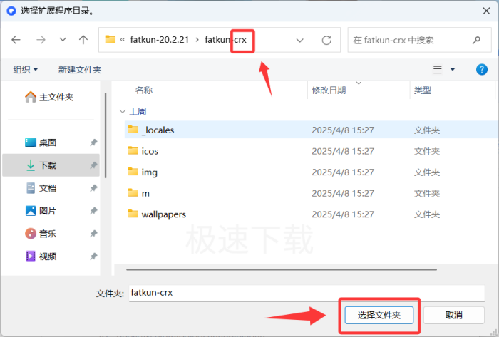5.打开后缀为【CRX】的文件夹后,点击右下方的【选择文件夹】;
