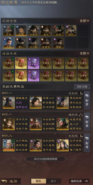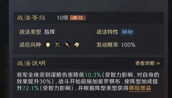 小技巧是可以利用紫色战法随时可换的机制,把前期的铸甲/追击一类的,换成一计决胜,显著提升决赛圈后面对汉盾的胜率